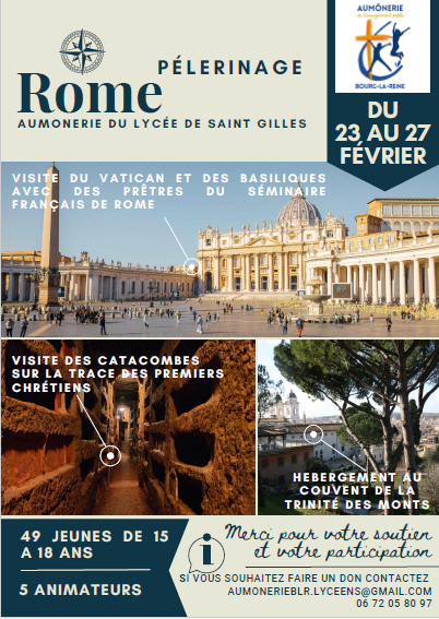 Les bénéfices permettront de contribuer au financement du pèlerinage à Rome qui conduira 49 lycéennes et lycéens et 5 animateurs de partir à Rome du 23 au 27 février 2026.