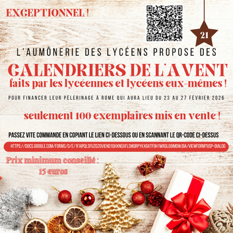 Vente de calendriers de l'Avent - Aumônerie des lycéens